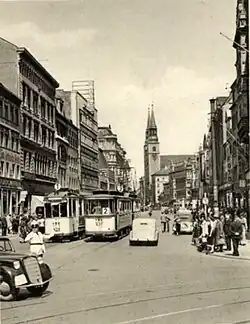 In der Zeit um 1924 betrieb Richard Lindemann ein Spezialhaus für Hüte und Schirme. 1925 erwarb der jüdische Kaufmann Jacob Abrahamsohn das Haus, 1933 zog die Familie dann auch hier ein. 1938 wurde er während der nationalsozialistischen Gewaltherrschaft gezwungen, das Haus und seine Firma zu verkaufen. Es wurde von Woolworth übernommen. Die Familie Abrahamsohn bestehend aus Jacob, Henriette und der Tochter Ruth-Helene wohnten zunächst weiter im Haus, wurden dann aber 1942 in das Ghetto Warschau deportiert und noch im gleichen Jahr im KZ Treblinka ermordet. Drei 2011 gesetzte Stolpersteine erinnern an sie.[6] Woolworth betrieb hier ein Warenhaus für Billigartikel. Als Mieter befanden sich im Haus das Dentallabor B. Bartsch, der Dentist K. Eschert, der Herrenschneider F. Bendix und das Detektivbüro Georg Grau.