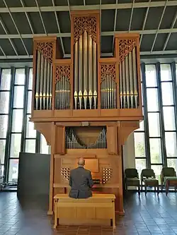 Die Orgel besteht aus Eichenholz, Metall- und Fichtenpfeifen. Sie ist vollmechanisch und hat 26 Register auf zwei Manualen und Pedal.[1] Die längste Pfeife misst 2,50 Meter.