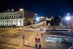 - Kreuzung Kärntner Straße / Wiedner Hauptstraße mit Straßenbahnlinien 1 und 62 sowie Lokalbahn Wien–Baden