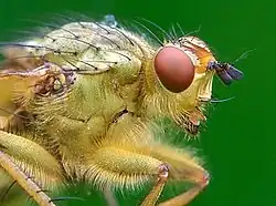 Die Zweiflügler (Diptera) bilden eine Ordnung der Insekten innerhalb der Neuflügler (Neoptera). Zu den Zweiflüglern gehören knapp 160.000 Arten aus 226 Familien,[1] wobei in Mitteleuropa über 9500 Arten zu finden sind und in Deutschland 9450.[2][3][4] Sie erreichen eine durchschnittliche Körpergröße zwischen 0,8 und 23 Millimeter. Die größte bisher bekannte Art ist Gauromydas heros mit etwa 60 Millimeter Körperlänge und einer Flügelspannweite von 100 Millimeter.