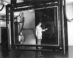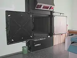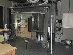 Im benachbarten Dunkelraum kann man nun über ein Steuerpult die gesamten notwendigen Einstellungen für eine scharfe Aufnahme vornehmen. Danach wird die schwenkbare Filmhalterung mit einem Film versehen. Diese großformatigen Filme werden per Vakuum an die Filmhalterung angesaugt und zur Belichtung in die optische Achse der Kamera geschwenkt. Die Entwicklung der Filme erfolgt in großen Wannen bzw. in großen Durchzugsentwicklungsmaschinen, bei denen der zu entwickelnde Film hintereinander 3 Bäder (Developer, Fixierer, Wasser) durchläuft und anschließend mit Warmluft getrocknet wird.
