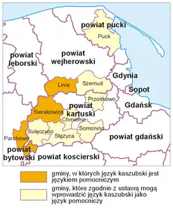 Kaschubisch wurde in drei Gemeinden als Amtssprache eingeführt: