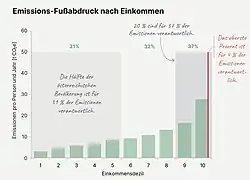 Pro-Kopf-Treibhausgasemissionen nach Dezilen der Haushaltseinkommen sowie Emissionen des höchsten Einkommensperzentils (Abbildung SPM.10)E.10: „Die Treibhausgasemissionen sind über die Haushaltseinkommen sehr ungleichmäßig verteilt.“ (Abbildung SPM.10)