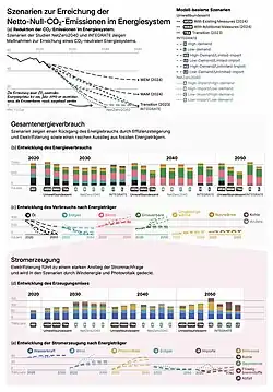 D.7: „Alle Szenarien zeigen, dass es einen raschen Ausstieg aus fossilen Brennstoffen braucht, um Klimaneutralität zu erreichen. Deren Anteil am Bruttoinlandsverbrauch sinkt von 68 % im Jahr 2021 auf 2–3 % im Jahr 2040. Fossile Flüssigbrennstoffe und fossiles Methan werden teilweise durch unterschiedliche Mengen biogener oder synthetischer Brennstoffe ersetzt; in den Szenarien wird ein geringer Anteil fossiler Brennstoffe in Kombination mit Kohlendioxidabscheidung und -speicherung im Jahr 2040 verwendet (1,25–1,5 Mio. t CO2 pro Jahr, entspricht 5,7–6,7 TWh pro Jahr).“