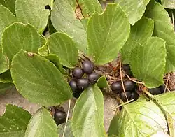 Die kugeligen, giftigen Früchte sind blauschwarz und leicht glänzend. Die Fruchtreife beginnt ab Juli.