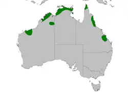 Heute kommt die Art nur noch in 6 Gebieten vor: der Hamersley Range, North Kimberley, der nördlichsten Spitze der Kap-York-Halbinsel, im Atherton Tableland, der Carnarvon Range und im äußersten Norden des Northern Territory.