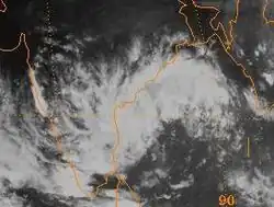 Ende September entwickelte sich im Arabischen Meer etwa 740 km westlich von Mumbai ein Tiefdruckgebiet. Es entstand aus einem bodennahen Trog, der in Ost-West-Richtung ausgerichtet war. Das System intensivierte sich stetig auf seinem langsamen Zug nach Westen.[9] Die erste Sturmwarnung des JTWCs wurde am 30. September verkündet. Zyklon 04A erreichte seinen Höhepunkt mit andauernden Windgeschwindigkeiten von 65 km/h. Da sich der Sturm innerhalb einer Zone mit mäßiger Windscherung befand, schwächte er sich rasch ab[30] und löste sich in der Frühe des 1. Oktobers auf.[9]
