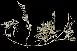 Die zwei bis sechs, meist drei Sporophyllstände sind 2 bis 12 Zentimeter lang gestielt.[1][2] Die Sporophylle sind in eine lange Spitze ausgezogen.